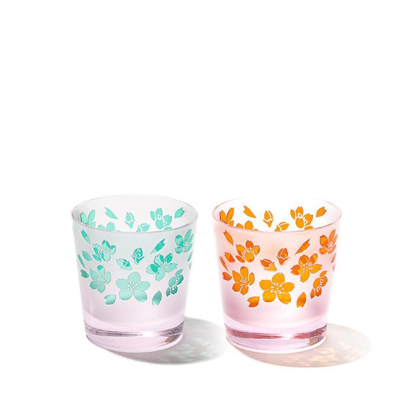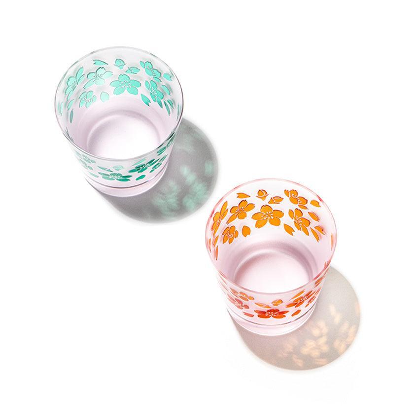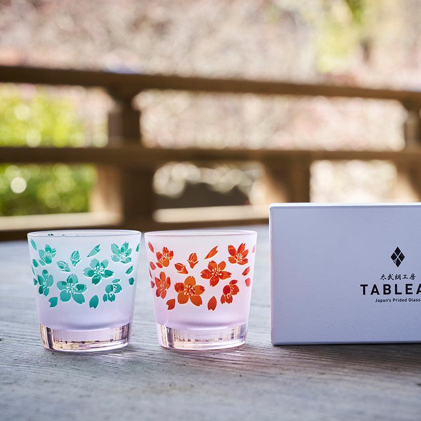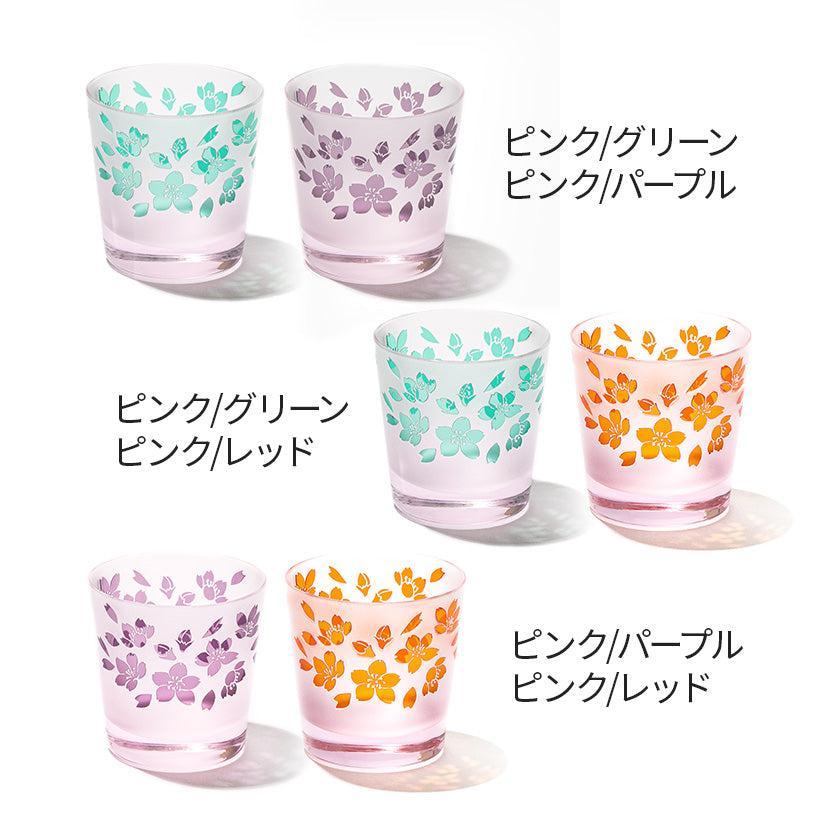 二層の色被せガラスを一つ一つ手吹きにて作り、その器に彫刻を手作業で施し、二色のコントラストで図柄を表現しています。ピンク色が華やかな桜のシリーズ。 優しい色味と使い易さを大切にした形の器は性別・年齢を問わずお楽しみいただけます。