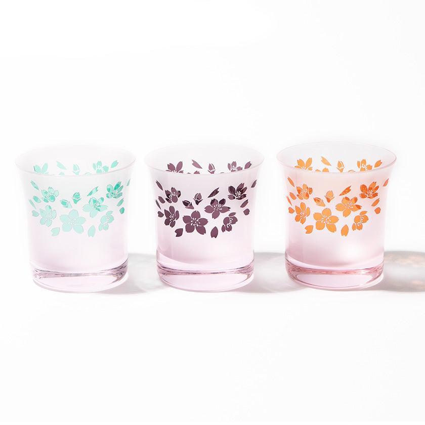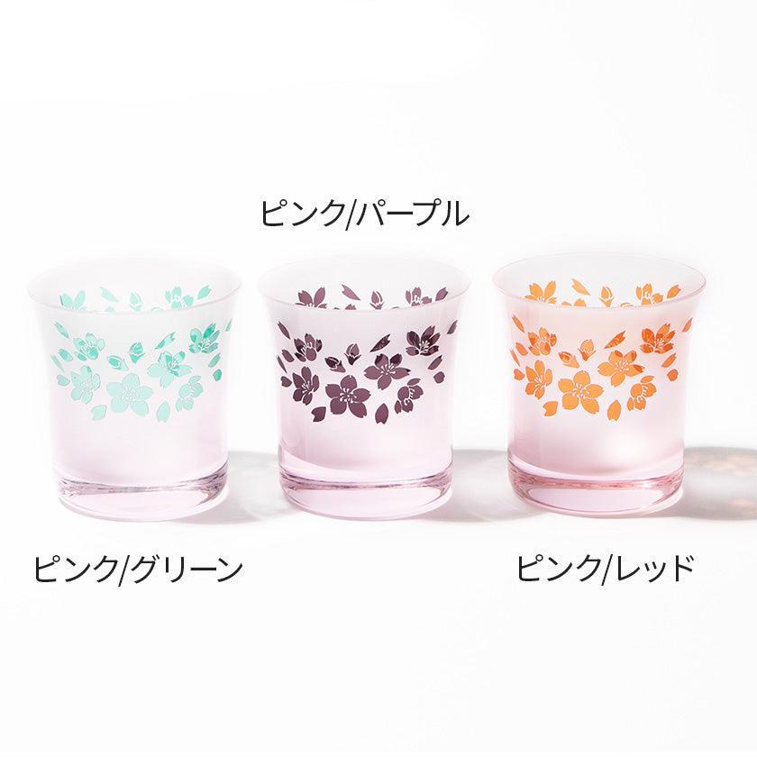 二層の色被せガラスを一つ一つ手吹きにて作り、その器に彫刻を手作業で施し、二色のコントラストで図柄を表現しています。ピンク色が華やかな桜のシリーズ。 優しい色味と使い易さを大切にした形の器は性別・年齢を問わずお楽しみいただけます。