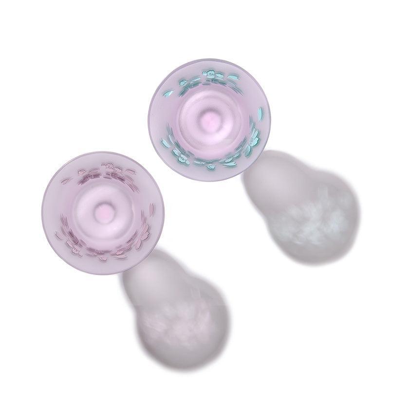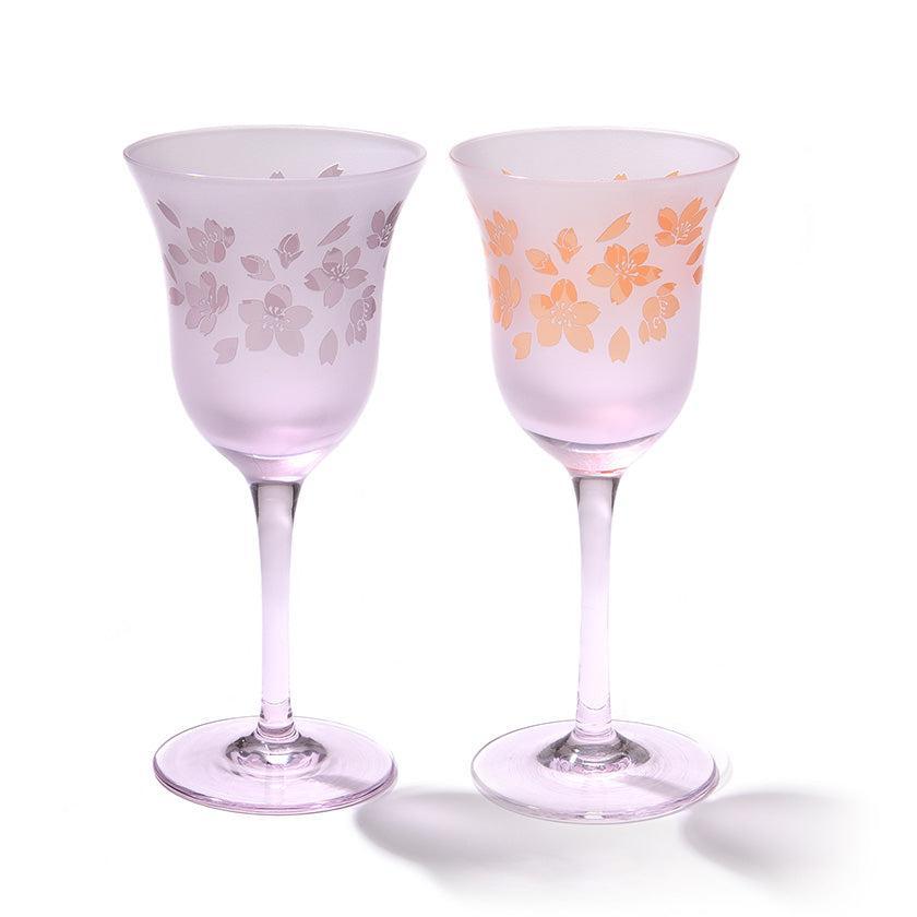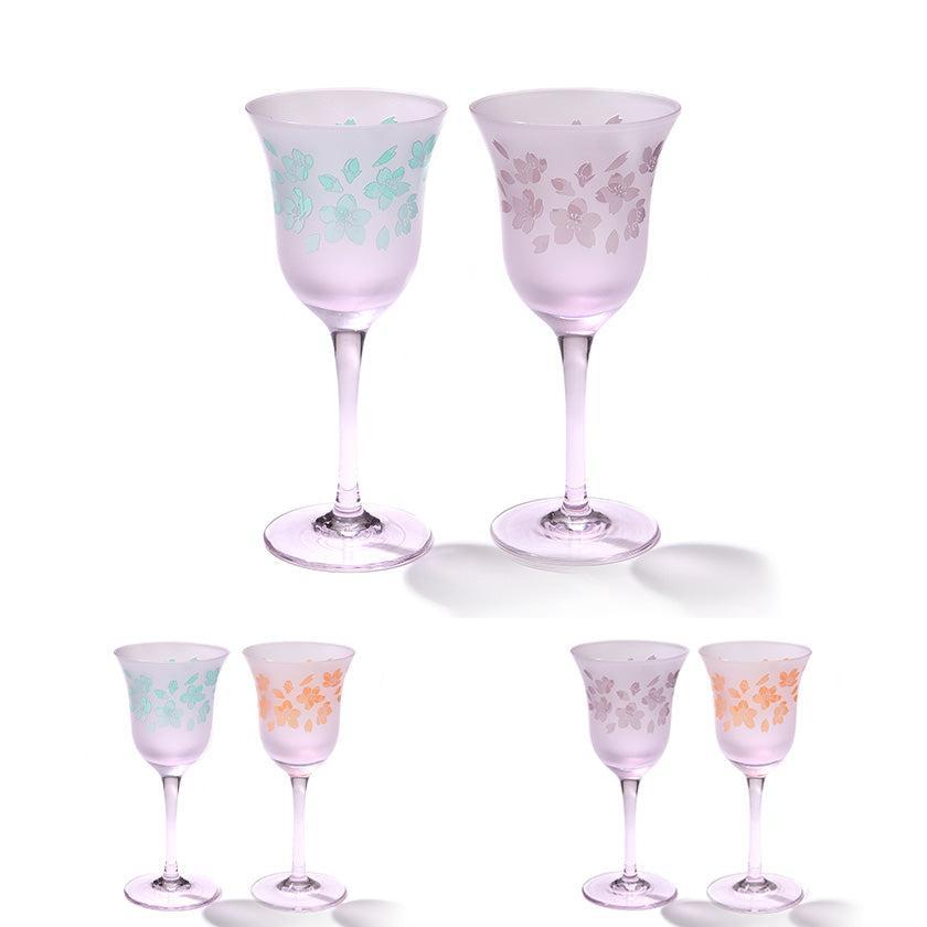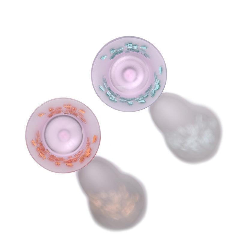 二層の色被せガラスを一つ一つ手吹きにて作り、その器に彫刻を手作業で施し、二色のコントラストで図柄を表現しています。ピンク色が華やかな桜のシリーズ。 優しい色味と使い易さを大切にした形の器は性別・年齢を問わずお楽しみいただけます。