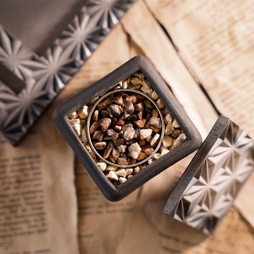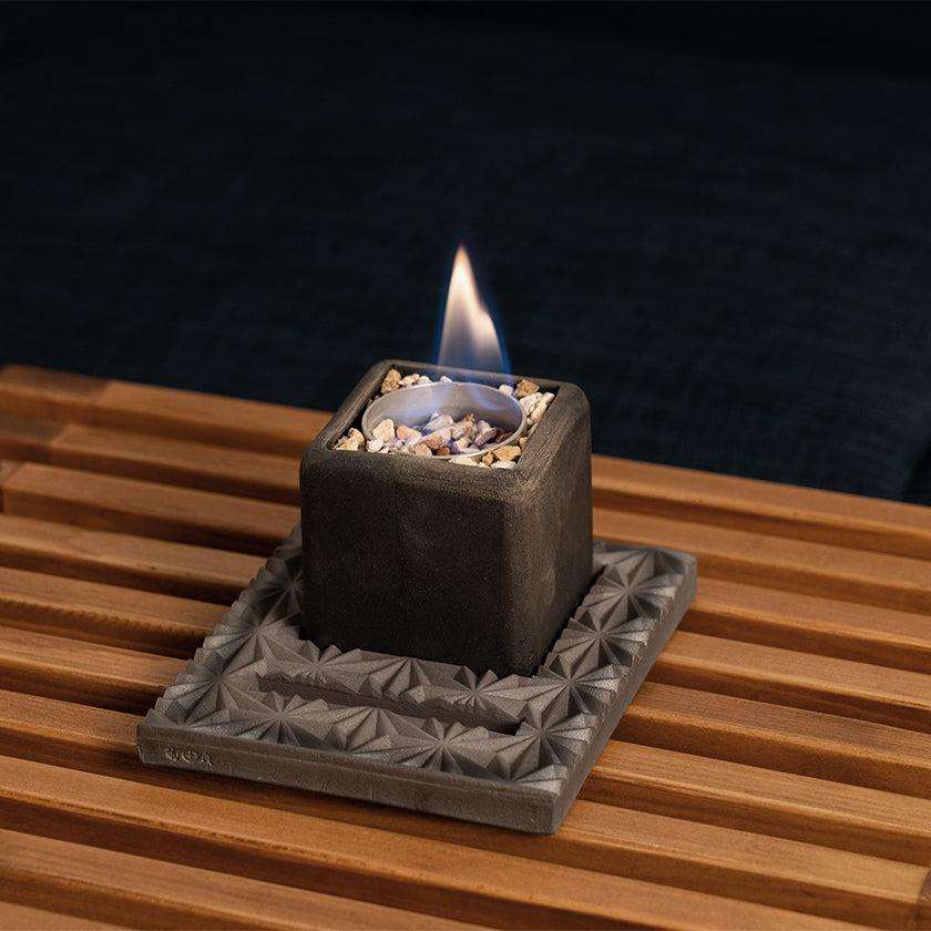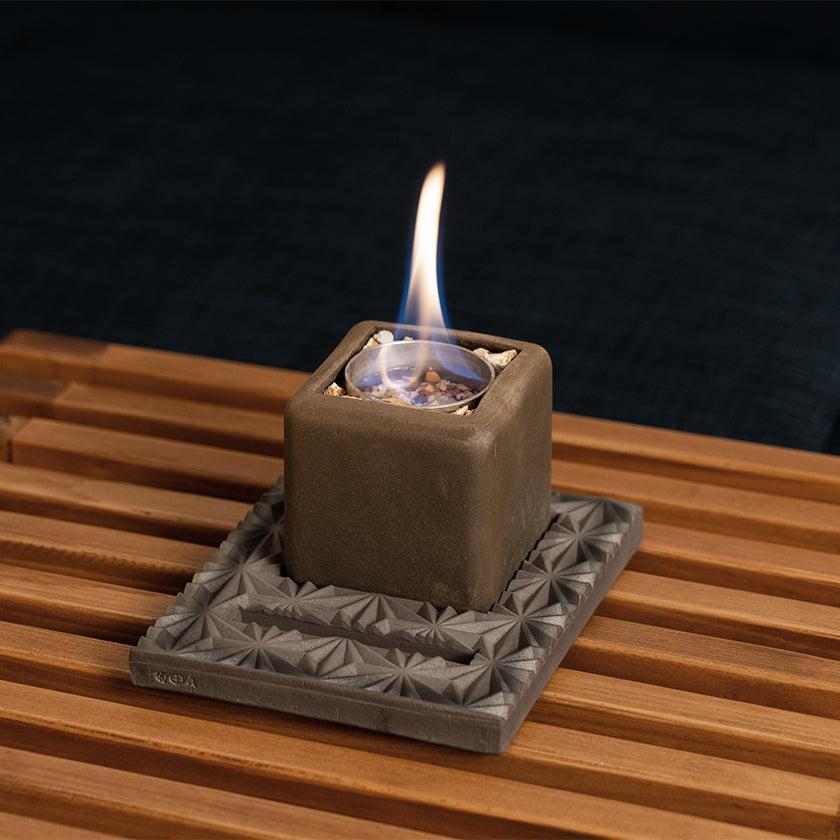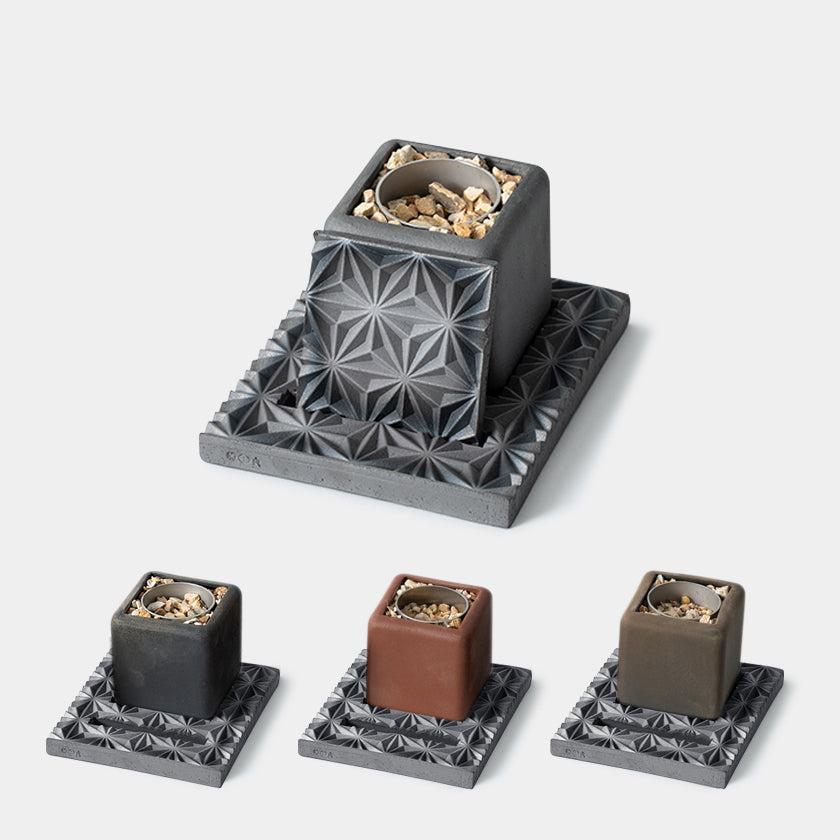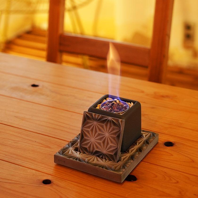愛媛の”技”を集約!菊間瓦を使った卓上焚火台です。コンパクトでデザイン性が高く、4つのカラーから選べる焚火台はもちろん、安定感ある土台、コースターにも使える火消し蓋もアウトドアシーンをおしゃれに演出します。伊予陶石や金属カップ、木箱なども、伝統を守る愛媛県内の企業によるもの。職人の想いがたっぷり詰まった逸品は、ご自宅用にもギフトにもおすすめです。